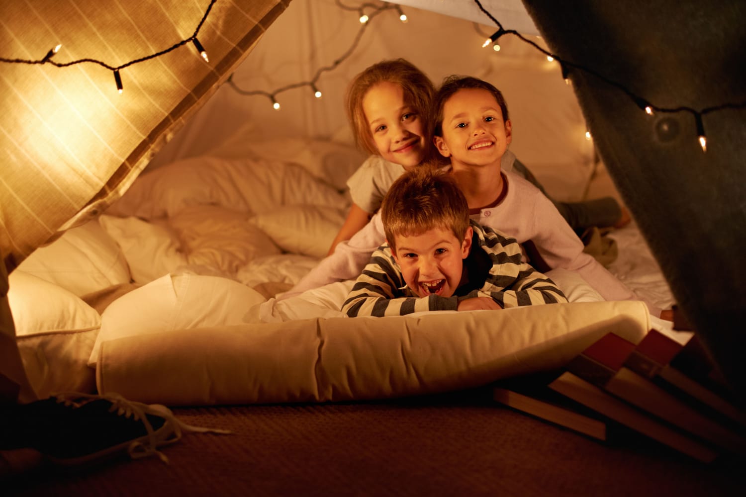 A blanket fort is a cozy, fun space for reading, playing, or listening to audiobooks.